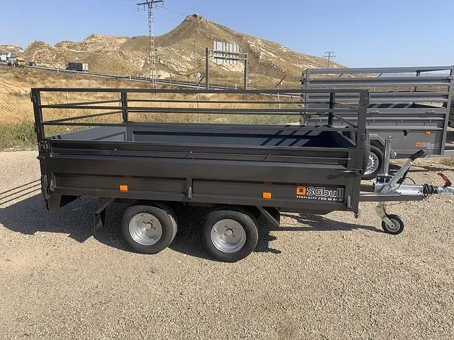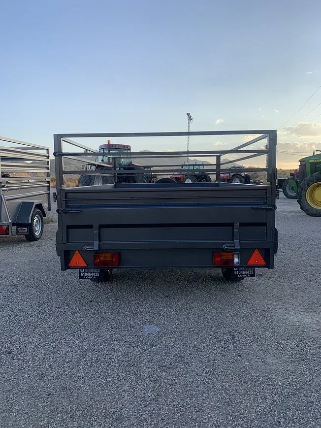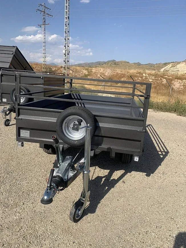 Remolque doble eje de 2,50 x 1,60, con rueda R10, ejes de 950kg, freno de inercia, barandilla de 40cm, rueda de repuesto, etc.